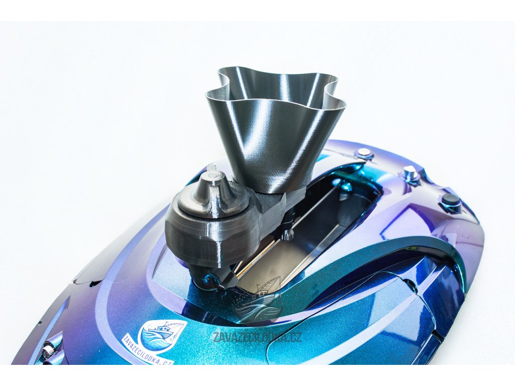 Rozmetadlo návnady pracuje samostatně a nezávisle na elektronice lodi. Automaticky se spustí při otevření levé komory, což zajišťuje maximální využití kapacity obou komor.